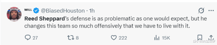 好意思媒NBA:谢泼德打得太愚蠢了,明明该把更多球给申京来运作。
